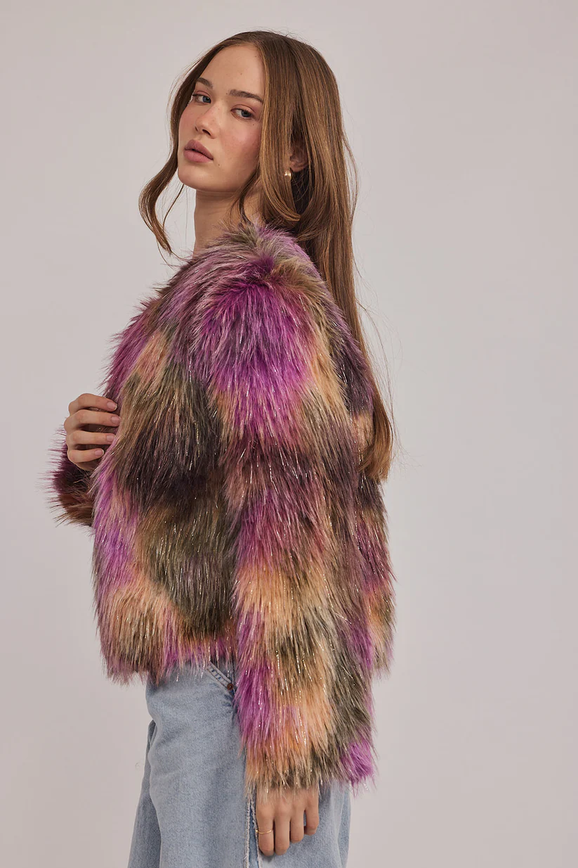 מעיל דמוי פרווה צבעוני בגזרה קלילה.