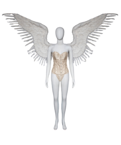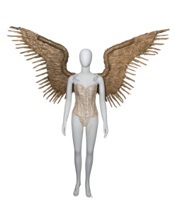 כנפיים מדהימות וייחודיות המתלפפות סביב הצוואר ויוצרות מעין צווארון. הכנפיים עשויות מנוצות פסיון בגדלים שונים ונסגרות בקשירה מלפנים.